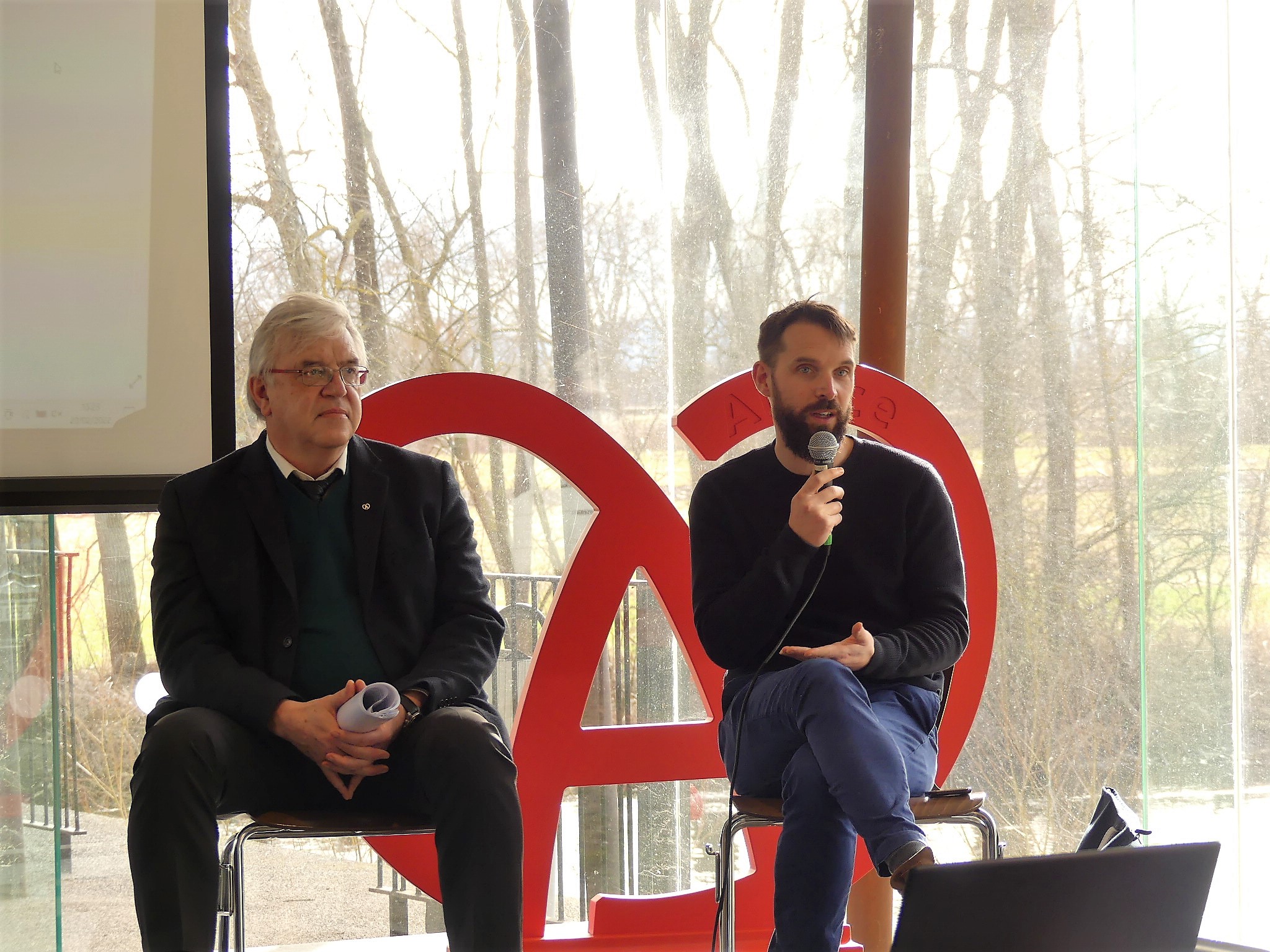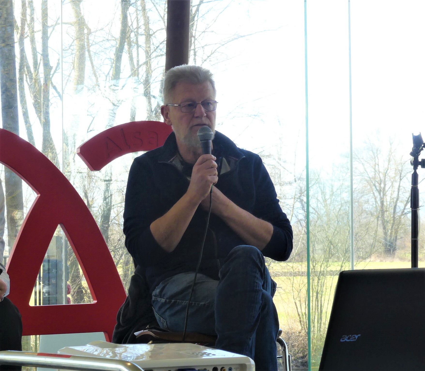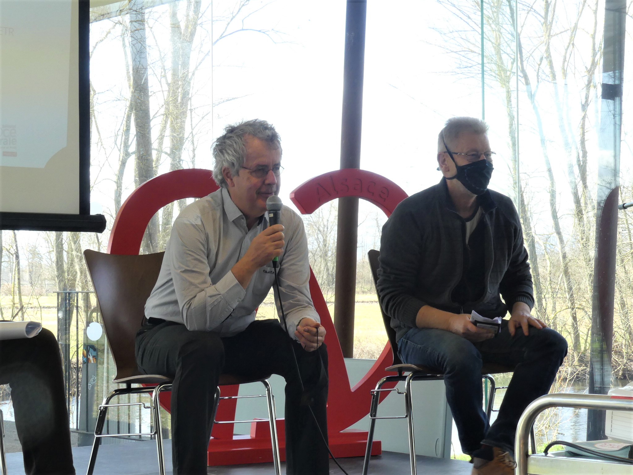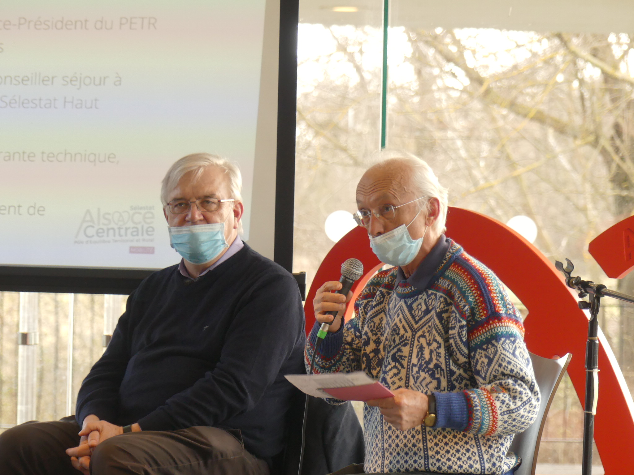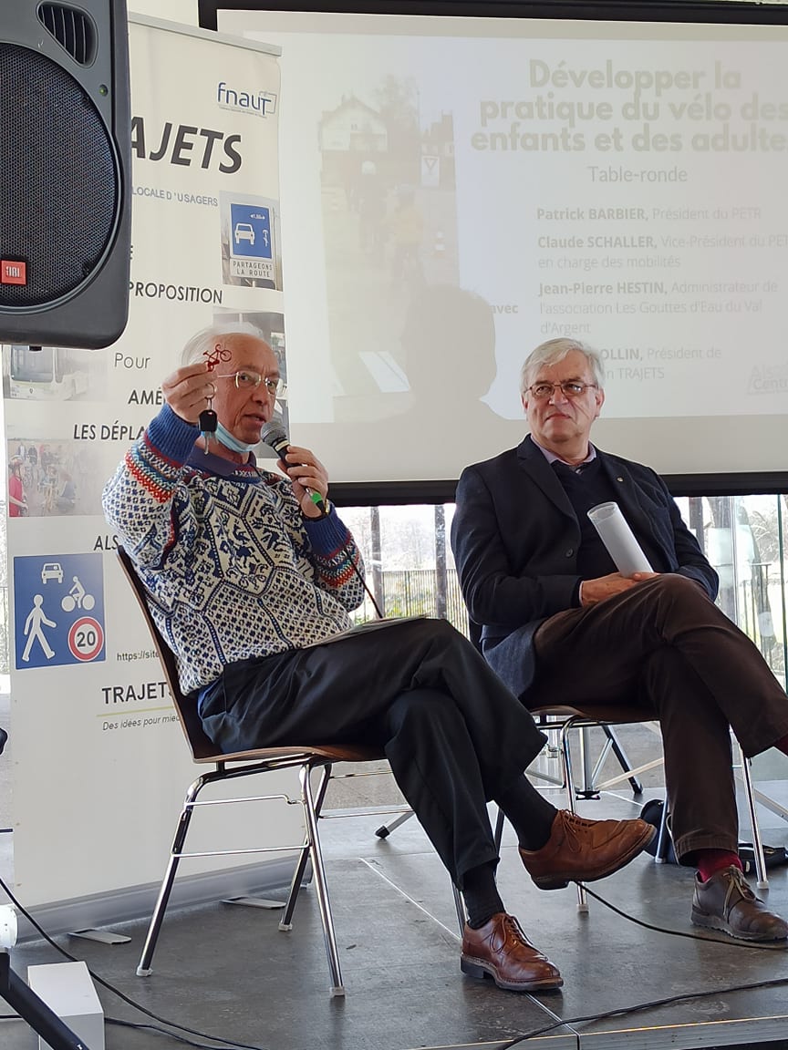 Jean-Pierre HESTIN, Administrateur de l’association Les Gouttes d’Eau du Val d’Argent, a présenté les actions de l’association, avec entre autres la création d’un tiers-lieu à Ste Marie aux Mines pour permettre aux télétravailleurs d’éviter de se déplacer et d’être dans un espace convivial. L’autre grand projet, le Vélobus pour l’Alsace centrale, vise à concevoir et à acheter un petit véhicule carrossé, à pédales, pour 9 personnes, pédalant ou pas, assisté électriquement, avec des panneaux photovoltaïques et la possibilité à terme d’intégrer un pack hydrogène. Ce vélobus sera construit par une entreprise locale, dans les Vosges. L’association a terminé la première partie du financement de ce vélobus grâce à des subventions de la région, du département, des collectivités et d’une campagne de financement participatif.